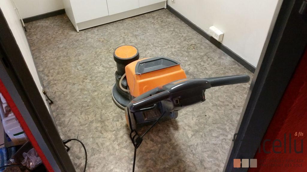 - . Décapage avec mono-brosse et produits décapants spécifiques